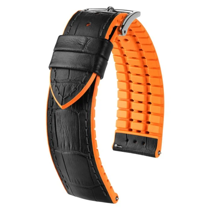 Frech, frisch und selbstbewusst.  Unser Uhrenarmband ANDY ist unerwartet anders. Unter der klassischen Oberfläche mit Alligatorprägung sticht der färbige HIRSCH Premium Caoutchouc Kern heraus. Ein Must Have für alle Uhrenträger, die das Außergewöhnliche lieben.