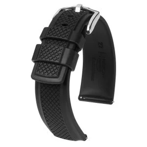 Das Modell HEVEA präsentiert die gelungene Verbindung von Ästhetik und Funktion. Ein klares Statement einfacher Würde. Und dabei ist dieses Uhrenarmband ein Hightech-Allrounder, setzt es sich doch sowohl sportlich als auch elegant gekonnt in Szene. Gefertigt aus hochwertigem HIRSCH Premium Caoutchouc zeigt es sich äußerst widerstandsfähig und wasserfest. Das Modell HEVEA ist, was es ist: schlicht schön.